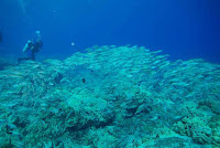 I was just visiting another blog and noticed this post by Andrew from "A Darker View" which is a great blog largely about astronomy and also has a fair amount of posts about his Big Island diving experiences. He managed to get a shot of an oddball jelly on the reef. We rarely see them on the reef, but a few weeks back there was a 4 day span of strangeness where the viz was well over 200' and there were crown jellyfish, comb jellies and other deep water stuff on the reef for a couple of days. Kinda neat. I took my camera down on one dive that week and saw a few things and realized too late that I'd left my memory card in the computer at home. I'm glad he got a shot of one while they were around. It's something you normally need to a blackwater dive to see.